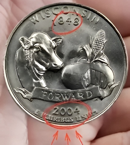 A: The 2004-D Wisconsin state quarter features an image of a cow, a wheel of cheese, and a stalk of corn. A rare minting error caused an additional leaf to appear on the corn stalk. There are two known variations: the “Extra Leaf High” and “Extra Leaf Low.”