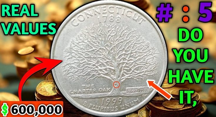 The coin featured in this video is the beautiful 1999 Connecticut State Quarter, part of the first year of the 50 State Quarters Program launched by the U.S. Mint. The design showcases the legendary Charter Oak, a symbol of independence and strength. While most of these coins are common, some rare minting errors have made a handful worth incredible amounts of money — reportedly as much as $600,000 in top condition!